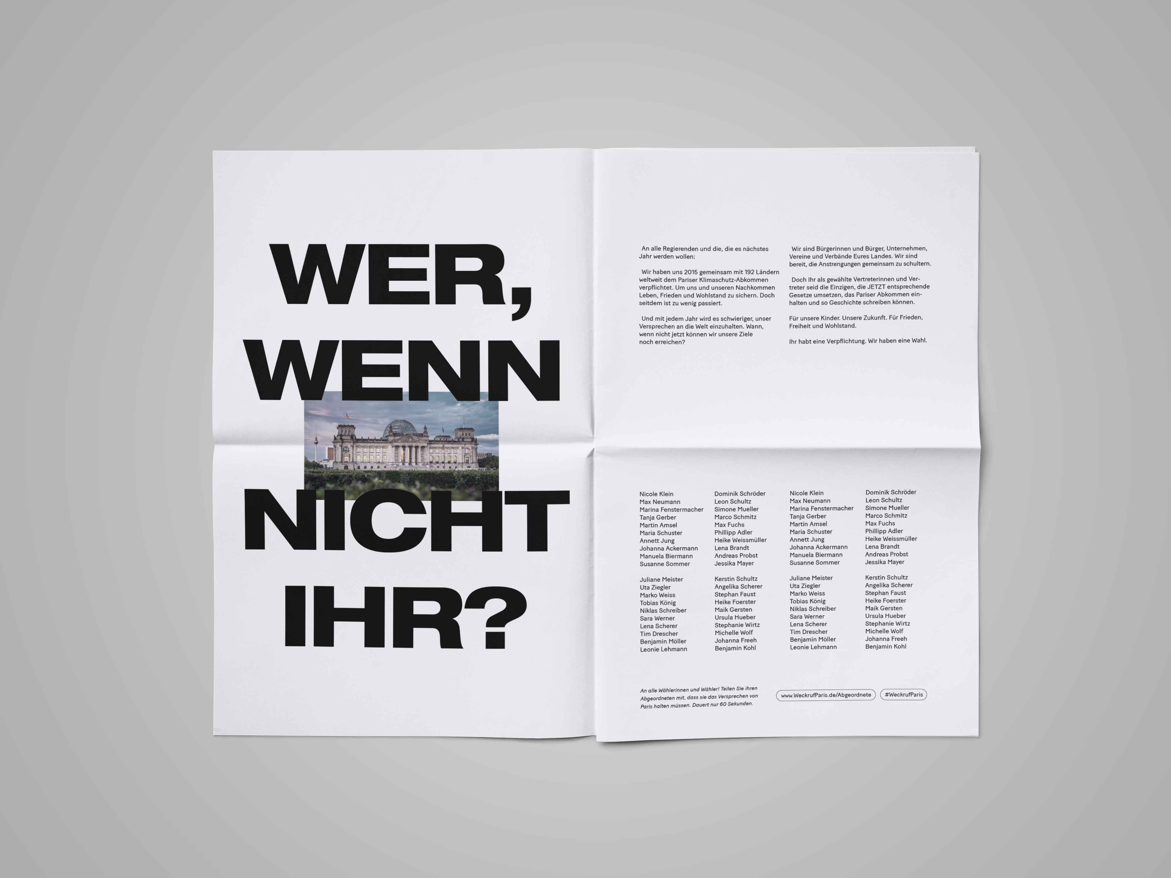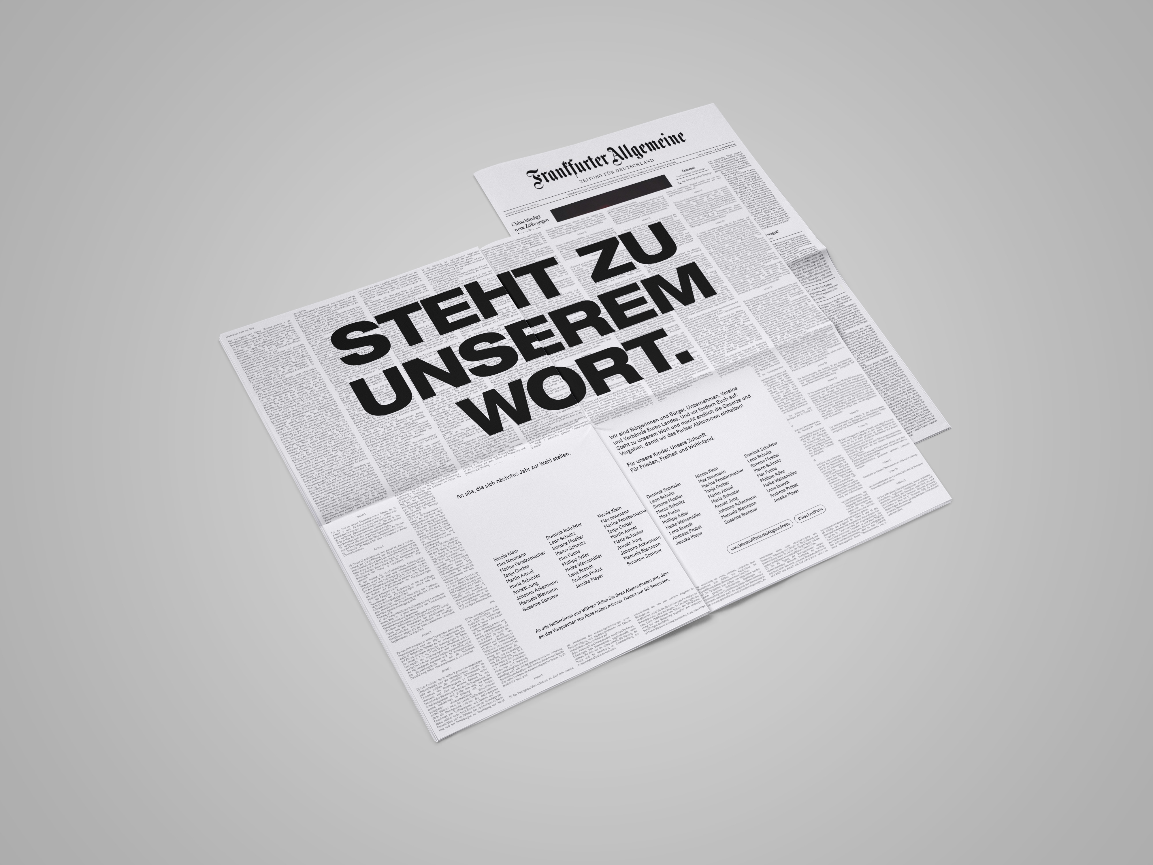 Anzeigen-Entwurf als Aufruf an Politiker.